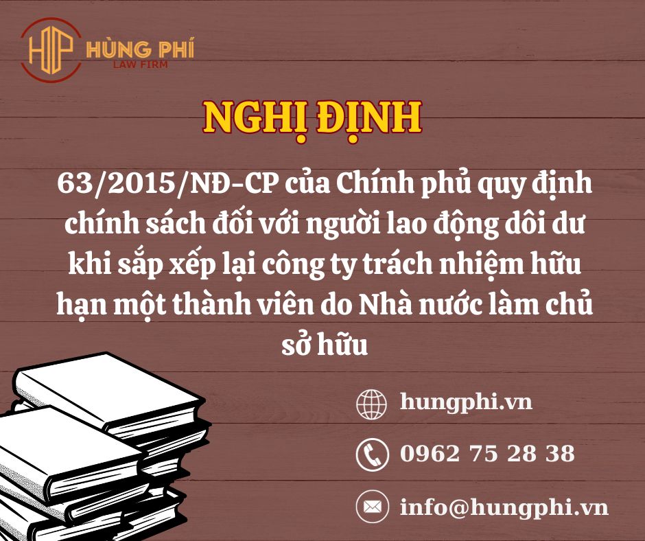 Nghị định 63/2015/NĐ-CP của Chính phủ quy định chính sách đối với người lao động dôi dư khi sắp xếp lại công ty trách nhiệm hữu hạn một thành viên do Nhà nước làm chủ sở hữu