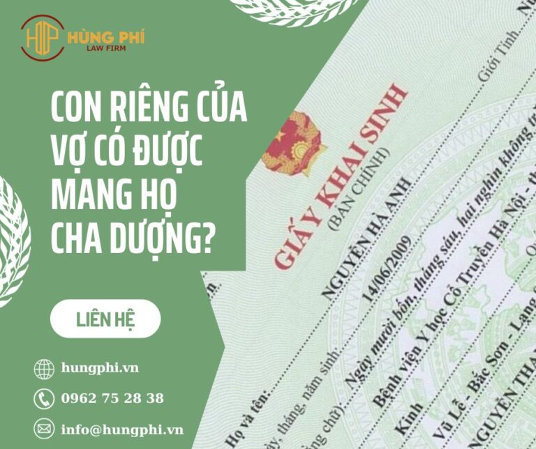 Trên đây là nội dung Con riêng của vợ có được mang họ cha dượng? mà Công ty Luật Hùng Phí xin gửi đến Quý khách hàng để tham khảo. Nếu Quý khách còn vướng mắc về vấn đề này hay cần luật sư tư vấn đối với trường hợp, vụ việc cụ thể của mình, Quý khách hãy vui lòng liên hệ luôn hôm nay với Luật sư của Công ty Luật Hùng Phí để được hỗ trợ, tư vấn kịp thời.